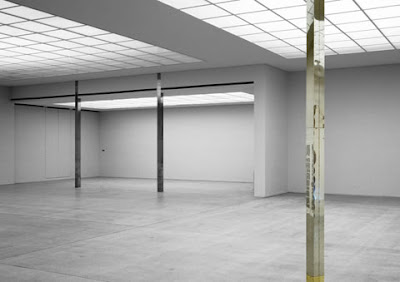 With the deliberately enigmatic title “The Fifth Column”, the show’s curator, Barcelona-based Swiss Moritz Küng, alludes to the complete renovation of the Secession in 1986, and more specifically to the four central columns of the Hauptraum designed by architect Adolf Krischanitz. Originally, they were clad in chrome steel and brass, but three years later the distinctive presence of this ambiguous reference to Otto Wagner was neutralized and covered over on the occasion of the exhibition entitled “Das Spiel des Unsagbaren: Ludwig Wittgenstein” (The Play of The Unsayable). For 20 years now, since 1991, these four columns have been painted over, their striking impact concealed.