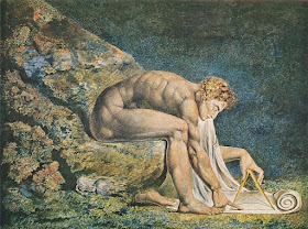 William Blake, pintor, grabador, filósofo y poeta inglés, (Londres, 28 de Noviembre de 1757-Ídem, 12 de Agosto de 1827). Formado durante su adolescencia en el taller del artista James Basire, en calidad de aprendiz del grabador. Posteriormente, completó sus estudios en la Royal Academy en compañía de los académicos Henry Fuseli o John Flaxman, entre otros. No obstante, debido a las profundas diferencias estéticas que lo separaban de la institución (Defensora del neoclasicismo), en breve optó por no continuar. Dotado de un inmenso talento para las letras, puesto de manifiesto incluso a lo largo de su infancia, (con 12 años, escribe el título: esbozos poéticos), da sólidas muestras de su brillante pluma a finales de la década de los ochenta (1789), con la publicación de la que sería una de las obras fundamentales de la poesía británica: Cantos de inocencia. Inicio con esta publicación, de una prestigiosa serie escrita, grabada y coloreada por él mismo, como fue la compuesta por: Cantos de experiencia (1794) y diversos libros proféticos. Además en 1795, más allá de su propia producción lleva a cabo más de medio millar (537) de acuarelas para la obra de Edward Young: La idea nocturna o las noches. A comienzos de la posterior centuria, (1800) decide trasladar su residencia a Felpham (Sussex), lugar en el forma parte del exclusivo grupo del poeta William Hayley, del cual bajo su patrocinio trabaja a lo largo de tres años y donde da inicio a sus colosales obras épicas: Milton (1804-1808) y Jerusalén, (1804-1820). Así como, su participación en La tumba de Blair o Los peregrinos de Canterbury (1810).Admirador e influido por nombres capitales, tales como: Alberto Durero, Miguel Ángel o Rafael, su legado basado en una peculiar visión del cristianismo alimentada por un tremendo poder visual, se presenta como una de las claves del incipiente simbolismo. Distinguido por su estilo lineal, imaginativo y alejado del academicismo, así como por su tratamiento personal y exclusivo de la luz, el espacio o el color, a día de hoy, está considerado como una de las figuras más representativas del prerromanticismo inglés. Incluido dentro del estilo neoclásico en su primera etapa profesional. A lo largo de los años evolucionó hacia una temática y simbologías propias de la edad media y el manierismo, en una continua búsqueda de la renovación.